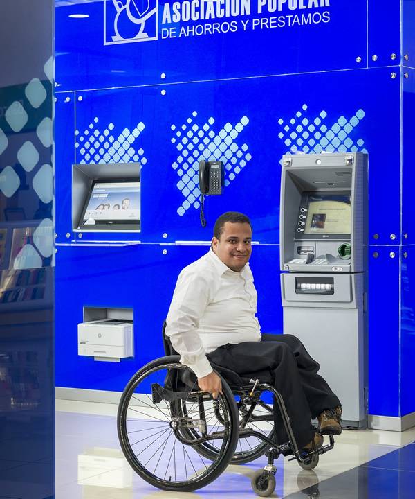En la actualidad el 100% de los cajeros automáticos de APAP han sido adaptados para que las personas con discapacidad visual puedan realizar sus transacciones de forma segura y autónoma, y que más del 90% de los canales digitales son accesibles.