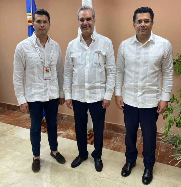 Punta Cana, RD.- Francisco López, CEO de Lopesan Hotel Group, el Presidente Luis Abinader y el Ministro David Collado sostuvieron un encuentro en el marco del DATE 2022 para afianzar los lazos de colaboración, y al mismo tiempo conversar sobre las nuevas inversiones del Grupo.