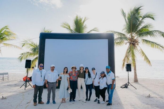 El filme elegido para este día histórico fue el documental dominicano Isla de Plástico, grabado en parte en esta misma área y producido por la actriz Nashla Bogaert, quien visitó la isla en el marco de esta iniciativa, como muestra de su compromiso con la protección del medioambiente y conciencia a la comunidad sobre el manejo responsable de residuos.