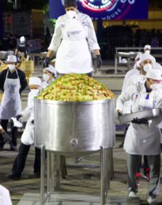 Este récord se logró durante la plataforma cultural “Santiago Inspira”, como un símbolo de unidad, identidad gastronómica y orgullo nacional. La monumental preparación requirió la participación coordinada de más de 29 chefs y estudiantes de escuelas de cocina, quienes trabajaron durante horas para elaborar esta icónica receta dominicana a gran escala.