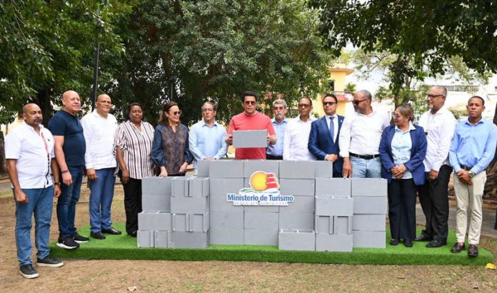 Santo Domingo, RD.- El ministro de Turismo, David Collado, dejó iniciados los trabajos de revitalización en el emblemático parque de San Miguel y su entorno, en la Ciudad Colonial.