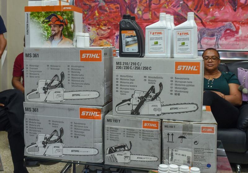 Díaz informó que los equipos donados consisten en motosierras, sus accesorios, aceites y combustibles para su funcionamiento, lo que permitirá despejar más eficientemente calles, caminos vecinales y casas, de árboles y vegetación derribadas por el paso del fenómeno.