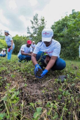 Santo Domingo, RD.- Bajo el lema “La parte que nos toca” colaboradores de MAPFRE SALUD ARS y voluntarios de MAPFRE BHD sembraron 250 árboles durante la jornada de reforestación que se llevó a cabo en el Parque Nacional Humedales del Ozama, a la altura de La Seiba en la comunidad de La Victoria.