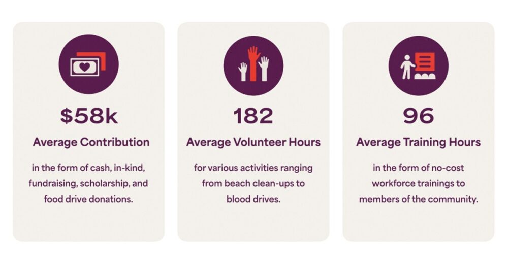 Resultados de un estudio piloto en San Diego a principios de 2024 demostró los impactos de gran alcance que los hoteles tienen en los beneficios de la comunidad, lo que llevó a la expansión de Hotel Caring a incluir más regiones del estado. Abajo hay ejemplos de San Diego contribuciones del hotel recogidas por Hotel Caring: