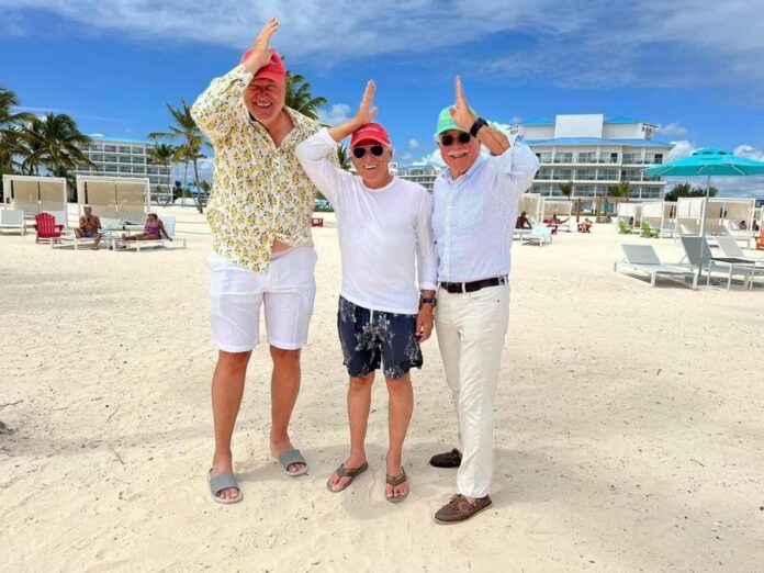 A su llegada a Margaritaville® Island Reserve Cap Cana by Karisma, Jimmy Buffett fue recibido por los ejecutivos de la corporación Karisma Hotels & Resorts, Lubo Krstajic y Mandy Chomat.