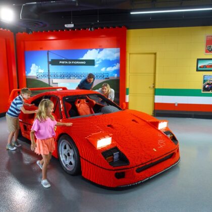 La pieza central de la inauguración fue un modelo Ferrari F40 rojo brillante en tamaño real, el único modelo de su tipo en el mundo, que fue desarrollado por LEGO Group. La elaboración del modelo LEGO le tomó a un equipo de maestros constructores de modelos más de 3.800 horas y más de 350.000 piezas de LEGO. Mide 4,3 metros de largo, 2 metros de ancho y 1,2 metros de alto, y pesa más de 1.360 kilogramos. Es una pieza visual central permanente en el «garaje» de la atracción, y los visitantes pueden sentarse en el modelo Ferrari F40 de escala real para tomarse fotografías.