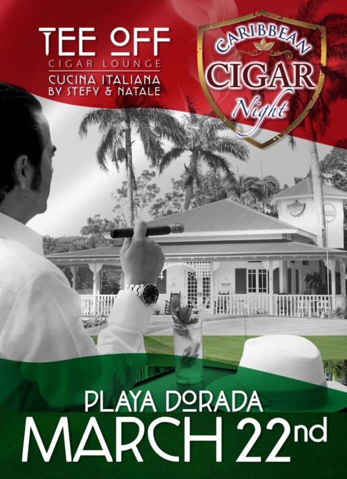 Puerto Plata, R. Dominicana.- El TEE OFF Cigar Lounge, del Campo de Golf Playa Dorada en Puerto Plata, se prepara para celebrar la 11va. Edición del Caribbean Cigar Night, que en esta ocasión se llevará a cabo este viernes 22 de marzo, a partir de las 7:00 pm.
