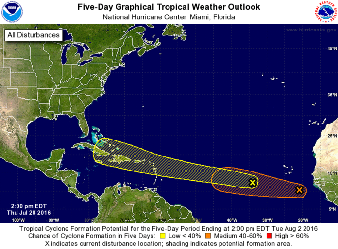 Miami.- El Centro Nacional de Huracanes en su reporte del día informa que está monitoreando dos ondas tropicales en el Oceano Atlántico que podrían tener potencial de desarrollo.
