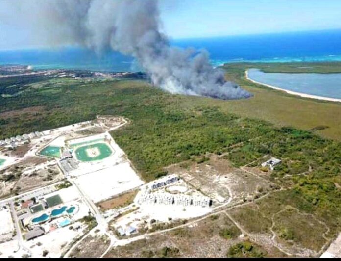 Bávaro, R. Dominicana.- Un incendio de gran magnitud se encuentra afectando la zona de la Laguna Bávaro, en el destino turístico de Punta Cana. El siniestro se encuentra incontrolable ya que los cuerpos de bomberos, tanto del distrito como del Aeropuerto Internacional, no pueden alcanzarlo por encontrarse en un área de difícil acceso y sin caminos transitables.