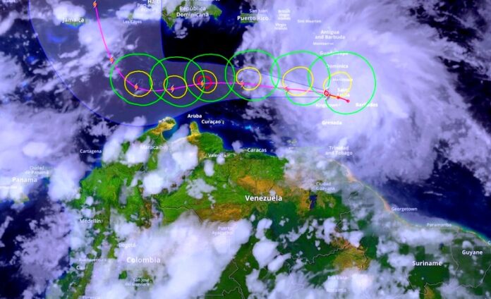El huracán se ubica a 105 millas (170 kilómetros) al noreste de Punta Gallinas (Colombia) y a 495 millas (800 kilómetros) al sureste de Kingston (Jamaica).