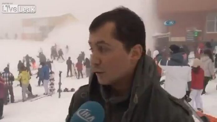 «Como pueden ver, se acaba de producir una avalancha. ¡Captaron una avalancha en video!», felicitó al periodista y al camarógrafo. Para hacer aún más absurda la respuesta, agregó: «La gente está muy contenta, y nosotros tratamos de hospedar a nuestros clientes de la mejor manera».