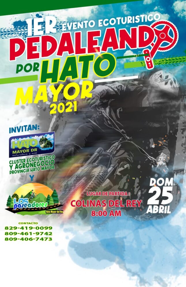 Hato Mayor, R. Dominicana.- El Clúster Ecoturístico y Agronegocio Provincia de Hato Mayor y el Club de Ciclismo Los Paseadores MTB realizarán un ruta ciclística recreativa y familiar de 35 kilómetros este domingo 25 de abril, denominada Pedaleando por Hato Mayor 2021.