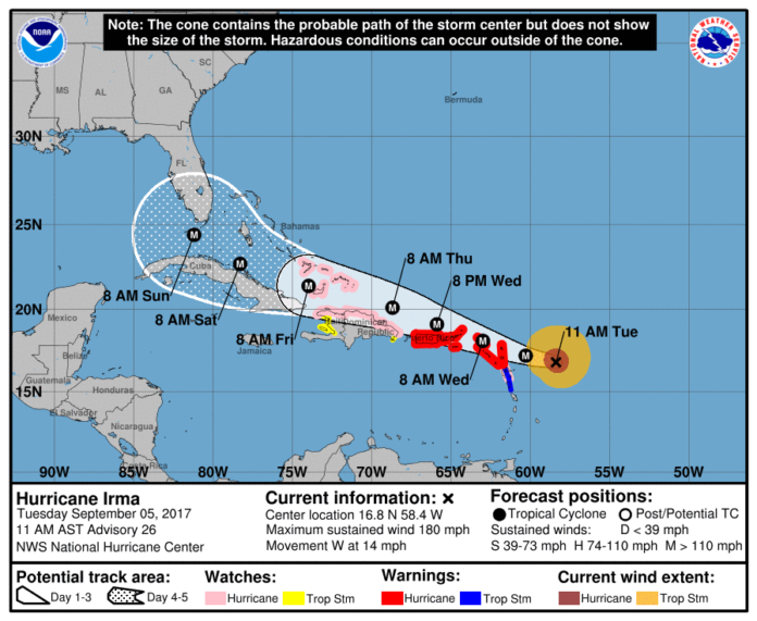 El huracán Irma convertido en un potente ciclón de categría 5, ya es considerado un peligro para gran parte del Caribe oriental. En estas últimas horas se ha fotalecido y continúa haciéndolo a medida que se acerca al arco de las Antillas, donde ya se están comenzando a sentir las primeras ráfagas de los vientos de las bandas externas.