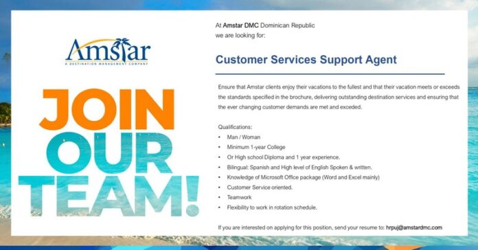 HOMEOfertas RRHHAmstar DMC busca personal para República Dominicana