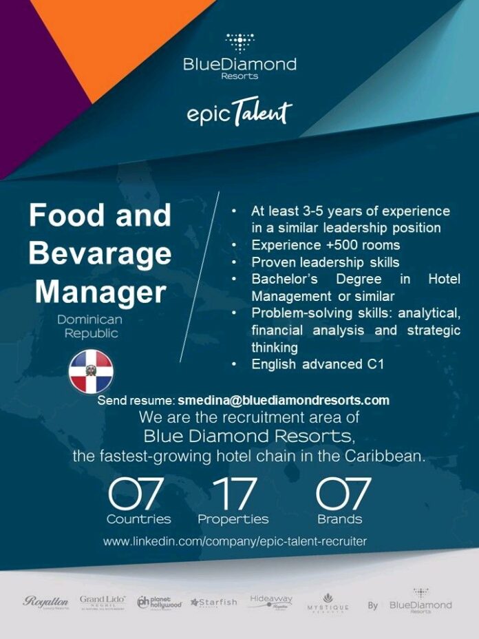 HOMEOfertas RRHHBlue Diamond Resorts solicita "F&B Manager"