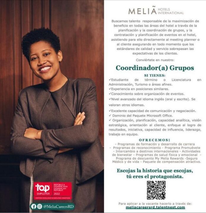 HOMEOfertas RRHHMeliá Hotels en RD selecciona Coordinador de Grupos