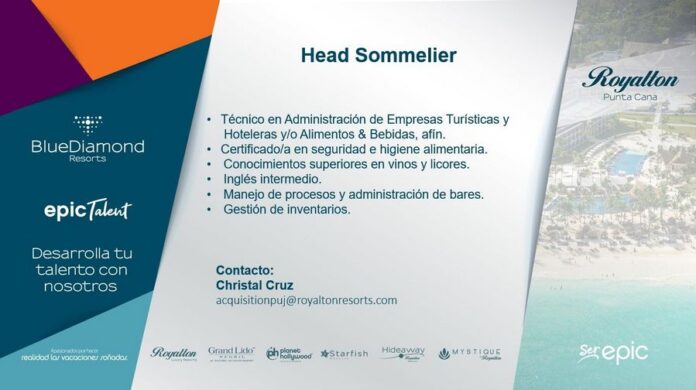 Royalton Punta Cana busca «Head Sommelier»