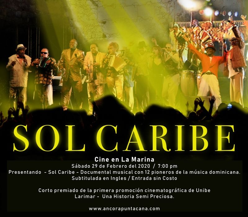 Cap Cana, R. Dominicana.- Ancora Punta Cana anuncia el evento Cine en La Marina a realizarse el sábado 29 de Febrero a las 7:00 pm en el Anfiteatro de frente a La Marina de Cap Cana, donde se presentara el Documental Musical Sol Caribe, dando continuidad a nuestro programa de exposición y difusión del cine dominicano en el Destino de Punta Cana.