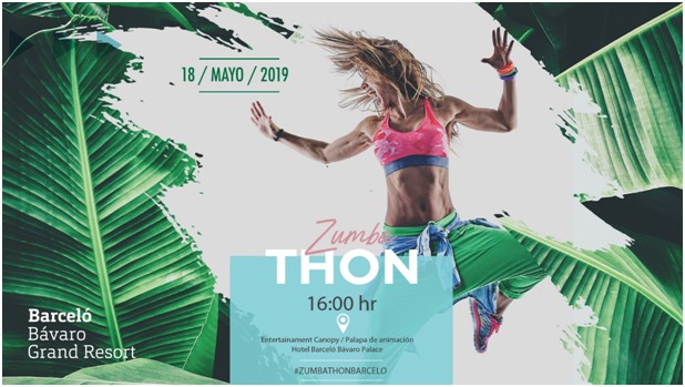 Zumbathon Barceló, está enfocado tanto a los huéspedes alojados como a todo aquel que quiera ir a pasar una tarde agradable y divertida. Una impresionante fiesta con este entrenamiento de baile único para estar en forma con música latina e internacional.