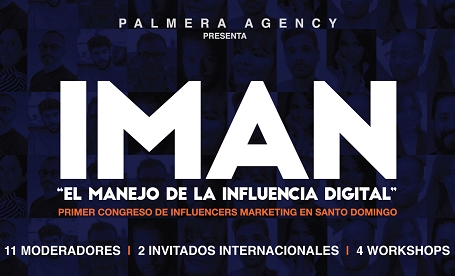 Bávaro, R. Dominicana.- Palmera Agency, empresa dedicada a la gestión de influencers marketing y desarrollo de contenido digital desarrollará el primer congreso dedicado a esta rama del marketing “IMÁN; El Manejo de la Influencia”. La iniciativa se compone de 11 ponentes, 1 invitado internacional y 4 workshops previos al congreso. La cita es el sábado 2 de junio en Downtown Center.
