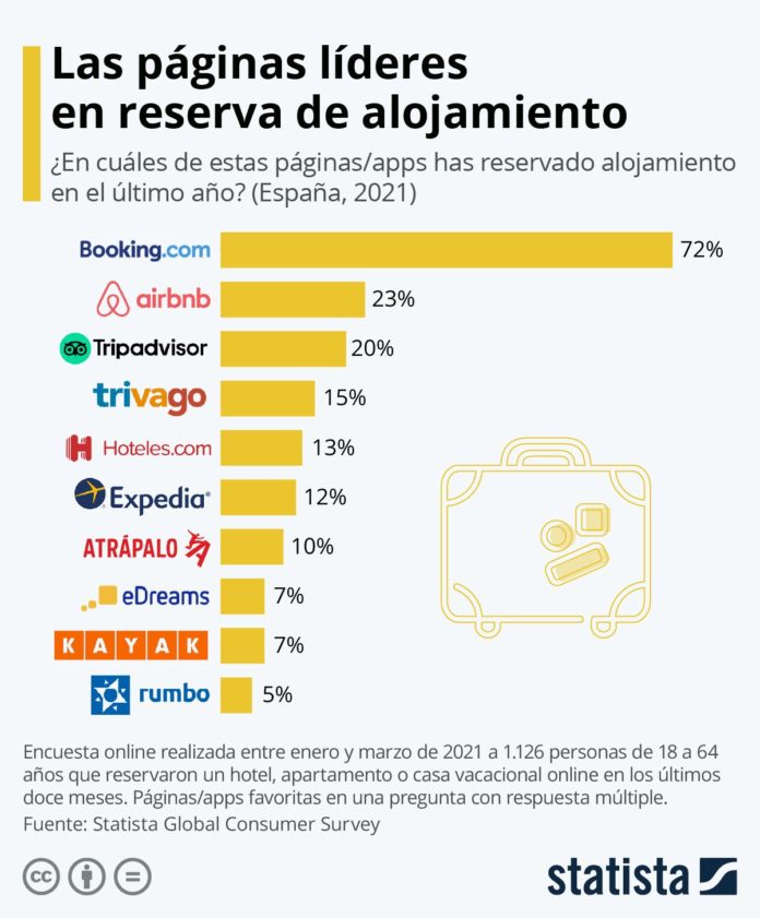 Tal y como recoge la macroencuesta Statista Global Consumer Survey, esta es la página preferida en el país, con un 72% de los participantes afirmando haberla usado para reservar algún tipo de alojamiento turístico en los últimos doce meses.