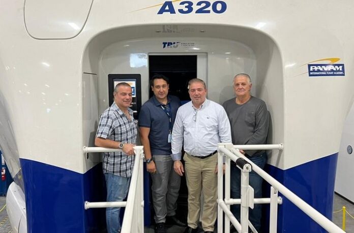 MIAMI, Florida.- El director general interino del Instituto Dominicano de Aviación Civil (IDAC) Héctor Porcella, visitó la “Pan American Flight Academy” en la ciudad de Miami, donde se entrenan los tripulantes de la aeronave Airbus A320 con capacidad para 174 pasajeros, que se integrará a la flota de la línea dominicana Sky Cana, a partir del próximo mes de febrero.