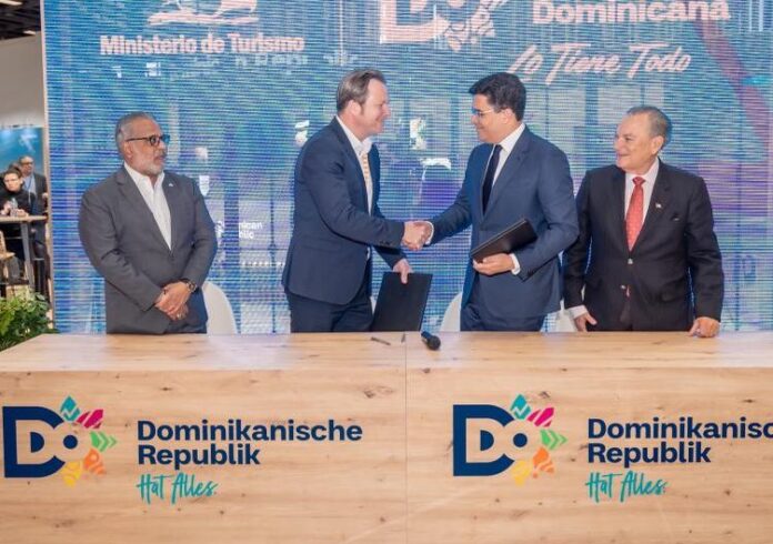 Berlín, Alemania. –El ministro de Turismo, David Collado, cerró este miércoles acuerdos con la aerolínea Cóndor que garantizan una frecuencia de 8 vuelos semanales en el verano y diez durante el invierno hacia República Dominicana.