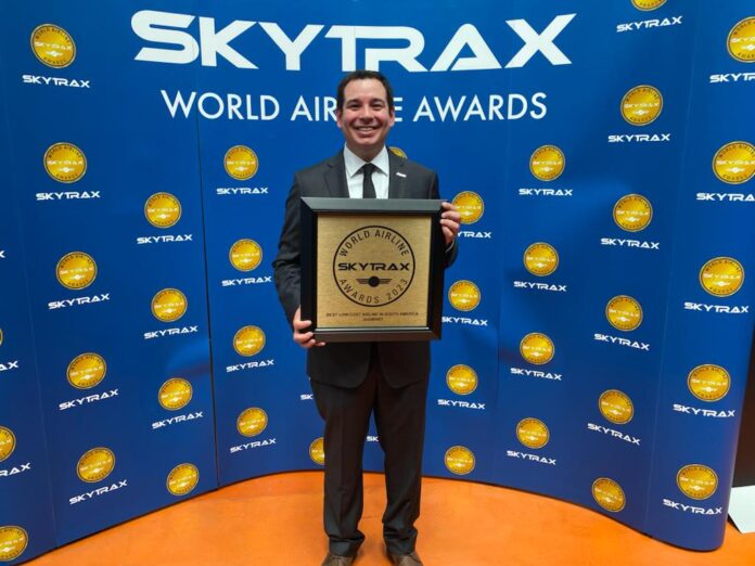 París, Francia. –En el marco de la feria aérea más importante del mundo, el Paris Air Show, la aerolínea ultra low cost JetSMART Airlines, fue reconocida como la mejor aerolínea low cost de Sudamérica por parte de Skytrax, organizadora de los World Airline Awards 2023.