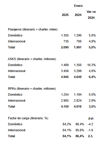 Ciudad de Mexico.- Grupo Aeroméxico S.A.B. de C.V. («Aeroméxico») informa de su Enero 2025 resultados operativos:
