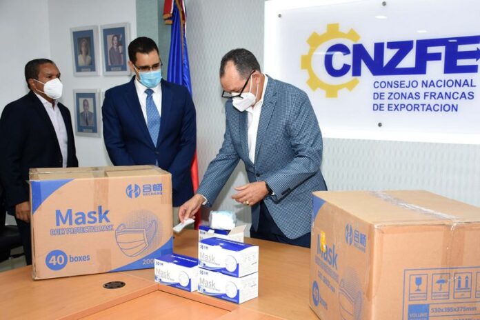 Santiago, R. Dominicana.- El Aeropuerto Internacional del Cibao y la empresa de zona franca Gildan realizaron otra demostración de solidaridad empresarial, con la donación al Gobierno de 120 mil mascarillas para seguir frenando la propagación del coronavirus en el país.