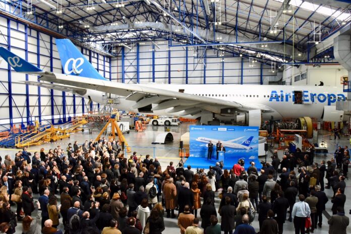 Madrid, España.- Air Europa presenta hoy su primer Boeing 787-9 Dreamliner con el que inicia la segunda fase de renovación de su flota de largo radio que culminará en 2022 tras la incorporación progresiva de otros quince B7879.