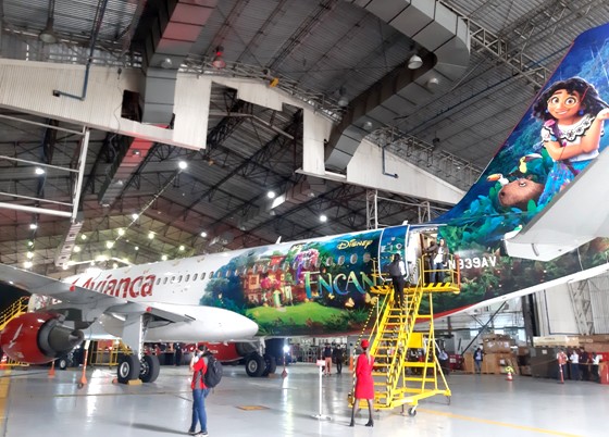 Bogotá, Colombia.- En un evento en Bogotá, Avianca presentó su avión con livery de la pelicula “Encanto” el cual fue diseñado en colaboración con Disney.