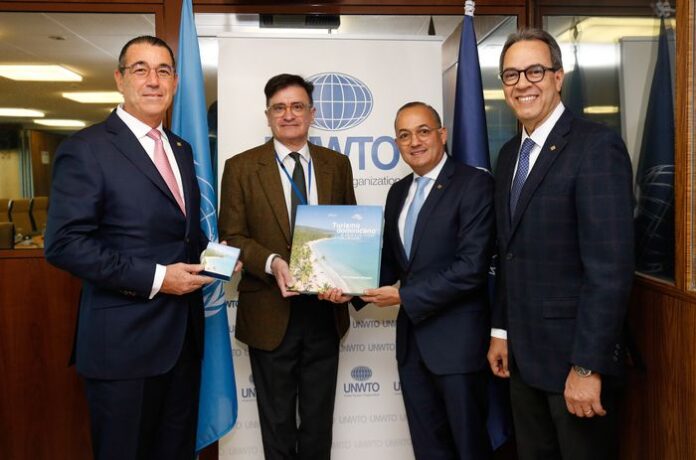 Madrid, España – En el marco de la feria internacional de turismo FITUR, un grupo de ejecutivos del Banco Popular Dominicano hizo entrega a la Organización Mundial del Turismo, con sede en la capital de España, de la más reciente publicación institucional de la organización financiera, el libro “Turismo dominicano: 30 años a velocidad de crucero”, de la autoría del ingeniero Pedro Delgado Malagón, en el cual se promueve el dinámico sector turístico dominicano y sus proyecciones de futuro.
