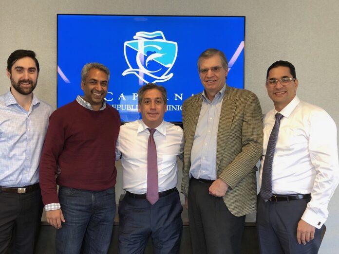 New York. E.E.U.U.- Representantes de Cap Cana, S.A., los señores Fernando Hazoury, miembro del Consejo de Administración, y Jorge Subero, Presidente Ejecutivo, hoy reunidos con representantes de los fondos de inversión que lideraron el comité ad hoc de bonistas, los señores AJ Mediratta, Presidente; Liam Localio, Director de Greylock Capital Management, LLC, y Fred Sykes, Director General de NWI Management, LP, para celebrar la finalización de forma muy exitosa de la reestructuración financiera de más de US$364 millones de dólares de obligaciones (más de RD$17,000 millones de pesos).