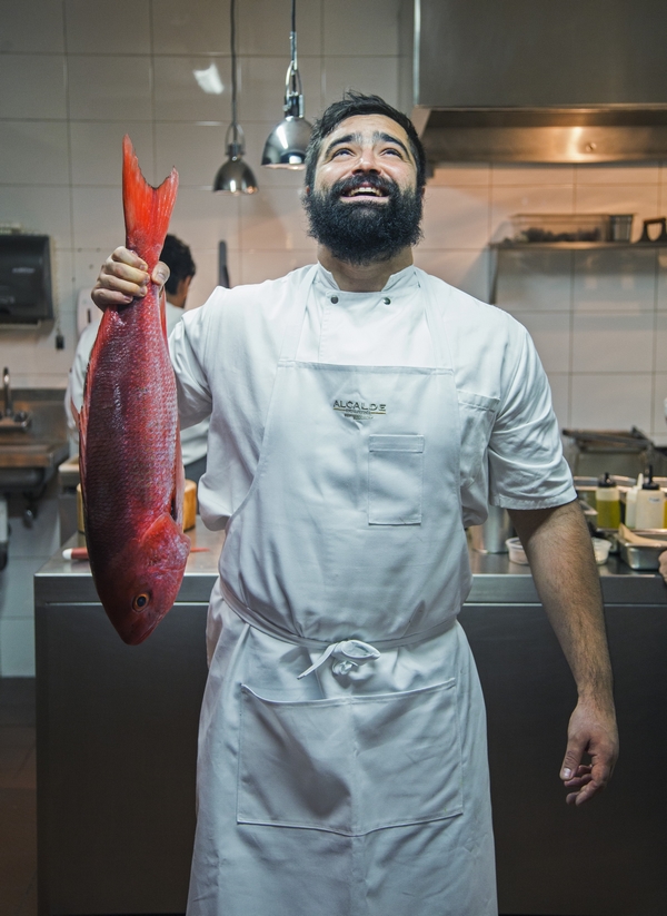 Ruano estuvo también en la escuela de cocina Luis Irizar, una de las más prestigiosas de España y trabajó en reconocidas cocinas del País Vasco, Girona y Dinamarca, y adoptó la sencillez en las presentaciones y la importancia de la cercanía con la tierra y sus productos, dos cualidades imprescindibles en el ejercicio cotidiano de Alcalde, restaurante que ha alcanzado la posición número.