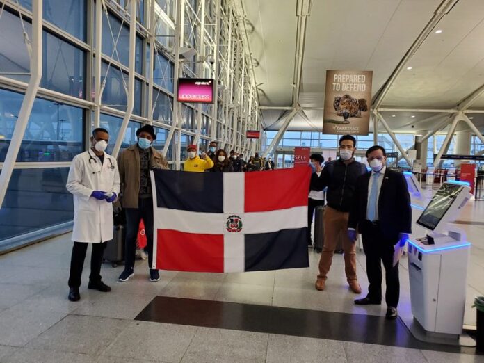 New York, EE. UU.- Un total de 118 dominicanos que permanecían varados en territorio estadounidense a consecuencia de la situación generada por la pandemia de Coronavirus, partieron hoy hacia Santo Domingo desde el Aeropuerto John F. Kennedy de esta ciudad, en el primer vuelo ferry organizado por el Consulado General de la República Dominicana.