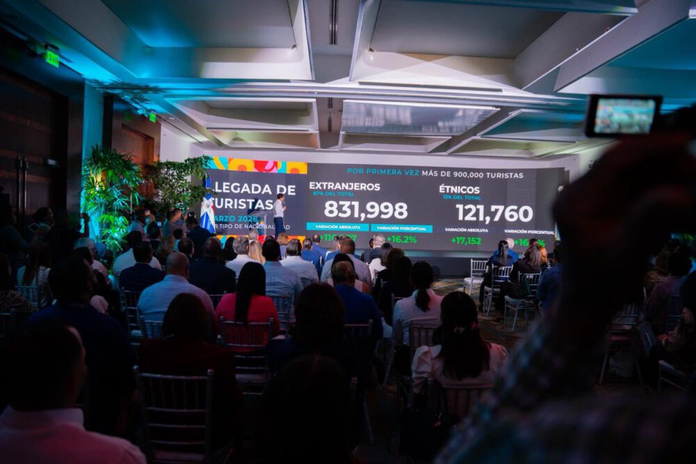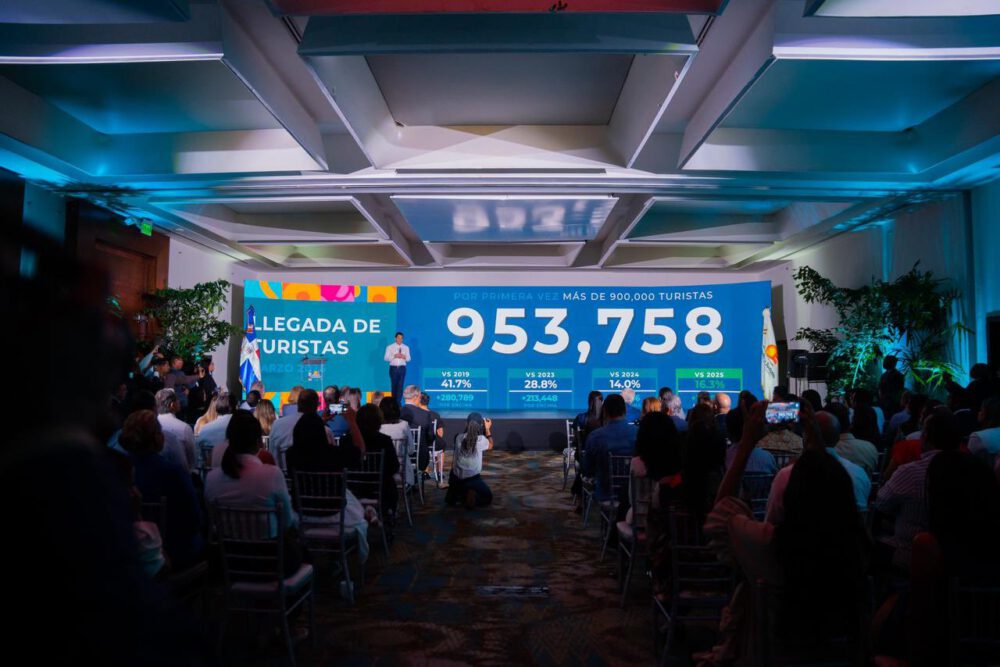 Informó que en marzo el país recibió 953,758 turistas, vía aérea, para un aumento de un 41,7% con relación al 2019, 28,8 frente al 2023, 14% en comparación del 2024 y 16,3% respecto al 2025.