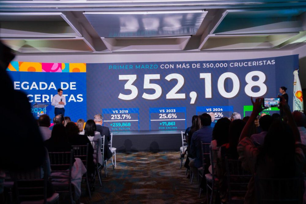 Indicó que en el pasado mes el crecimiento, también, fue notable por vía marítima, al registrar la llegada de 352,108 cruceristas, lo que refleja un crecimiento de 213,7 respecto a marzo del 2019, 25,6% frente al 2023, 31,5% en comparación con el 2024 y 8.1% con relación al 2025.