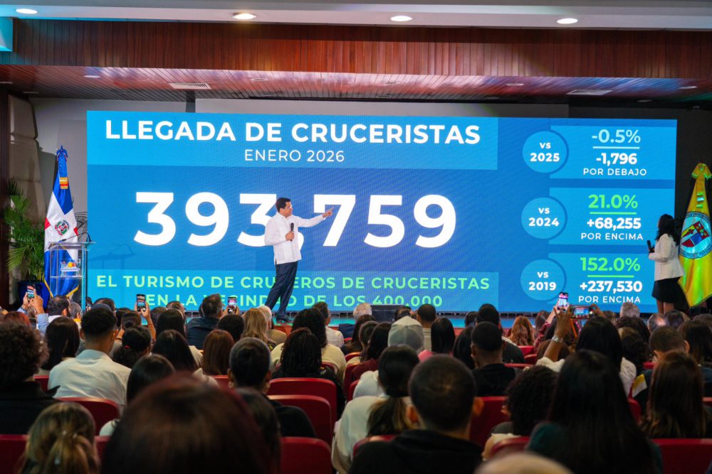 Por la vía marítima el país también recibió, en enero, 393,759 cruceristas, lo que representa un aumento de 21% con relación al 2024 y 152% respecto al 2019.