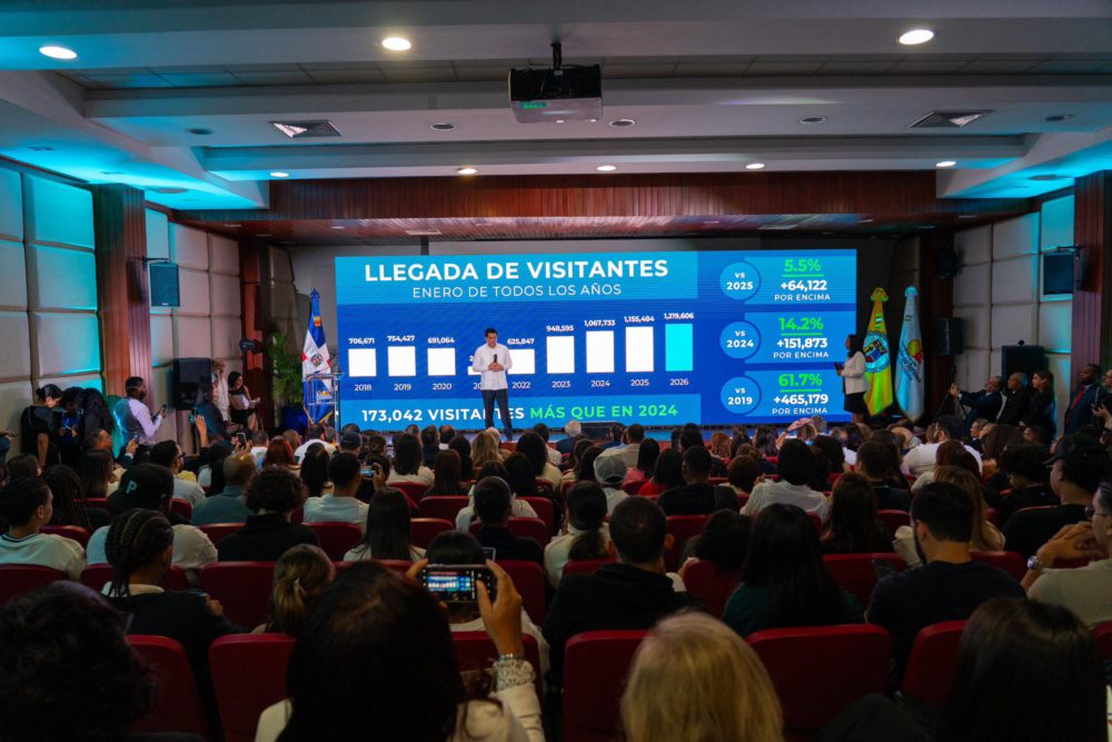 Santo Domingo, RD. – El turismo dominicano arrancó con buen pie este año al registrar la llegada de 1,219,606 de visitantes en enero, lo que representa un crecimiento de 5,5% con relación al mismo mes del año pasado, 14,2% respecto al 2024 y 61,7% en comparación del 2019, informó el ministro David Collado.