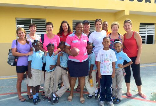 Catherine Cloutier de Air Canada Vacations con asiento en Punta Cana, fue la encargada de organizar todo el evento, además Air Canada Vacations y Hola Tours aportaron 4 computadoras completas, los participantes también aportaron diversos materiales escolares y juegos que trajeron desde Canadá.