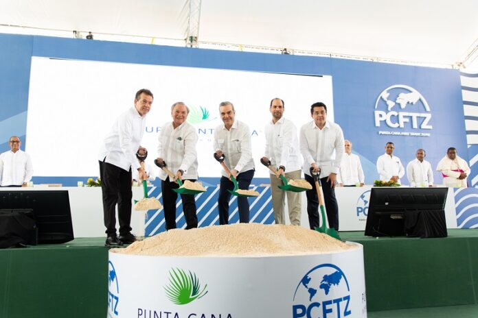 Punta Cana, La Altagracia. – Grupo Puntacana inició la construcción del Punta Cana Free Trade Zone (PCFTZ): Centro Logístico Aéreo, Marítimo, Terrestre y Parque de Zona Franca; además de la expansión de la Terminal B del Aeropuerto Internacional de Punta Cana (AIPC), en un acto encabezado por el presidente de la República, Luis Abinader.