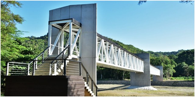 Al ofrecer los detalles técnicos del proyecto, De los Santos manifestó que el mismo consta de estructura metálica Vigas “W” colocadas sobre tres pilares de hormigón armado, con cables colgantes de acero en escaleras como en el puente. Dispone además de estructuras en madera de Pino Bruto Americano, colocadas en el techo y escaleras, así como baranda metálica en acero.