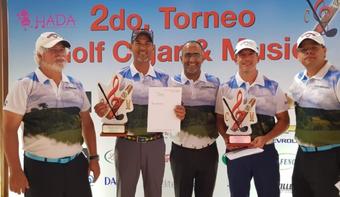 La Romana, R. Dominicana.– Con una extraordinaria participación de 116 golfistas fue celebrada la segunda edición del ”Torneo Golf, Cigar and Music 2018″ en el diseño de P. B. Dye, La Estancia Golf Club, en el cual la pareja compuesta por Marlon Bonelly y Alexis Dumé resultaron los mejores jugadores del torneo que se jugó en formato Scramble en Parejas con el 25% del hándicap