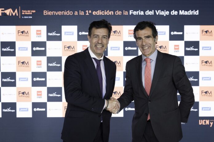 Madrid, España.- El Director de la División Minorista de Globalia, Jose María Hoyos, y el Director General de Turismo de la Comunidad de Madrid, Carlos Chaguaceda, han participado hoy en un acto celebrado en el Wizink Center, antiguo Palacio de los Deportes de Madrid, con motivo de la presentación de la primera edición de la Feria del Viaje de Madrid.