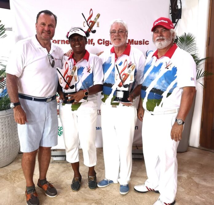 La Romana, R. Dominicana. – Fue celebrada la tercera edición del ”Torneo Golf, Music and Cigar 2019″ en La Estancia Golf Club, en el cual la pareja compuesta por los esposos Kjell Nord y Cecilia Rosado de Nord obtuvieron el mejor score gross del evento, para ser los grandes campeones del torneo que se jugó en formato Scramble en Parejas con el 25% del hándicap, y que tuvo la participación de 104 jugadores. El evento fue organizado por Iván Fernández, presidente de Events & Projects EFEGE, bajo la dirección técnica de Felix Olivo y su empresa Golf & Punto.