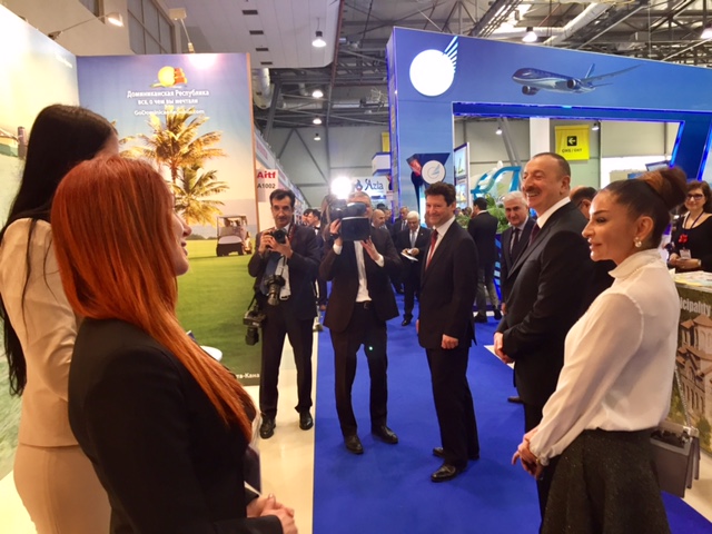 El presidente Ilkham Aliyev y la primera dama, Mekhriban Aliyeva y altos funcionarios de esa nación, en su tradicional recorrido por la feria, mostraron gran interés por el stand y el destino República Dominicana, sobrepasando el tiempo establecido por el protocolo.